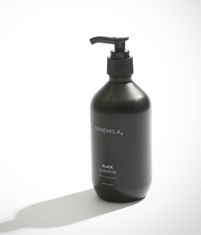 젖은 모발에 블랙 샴푸를 1-3회 펌핑 후, 두피와 모발을 마사지해줍니다